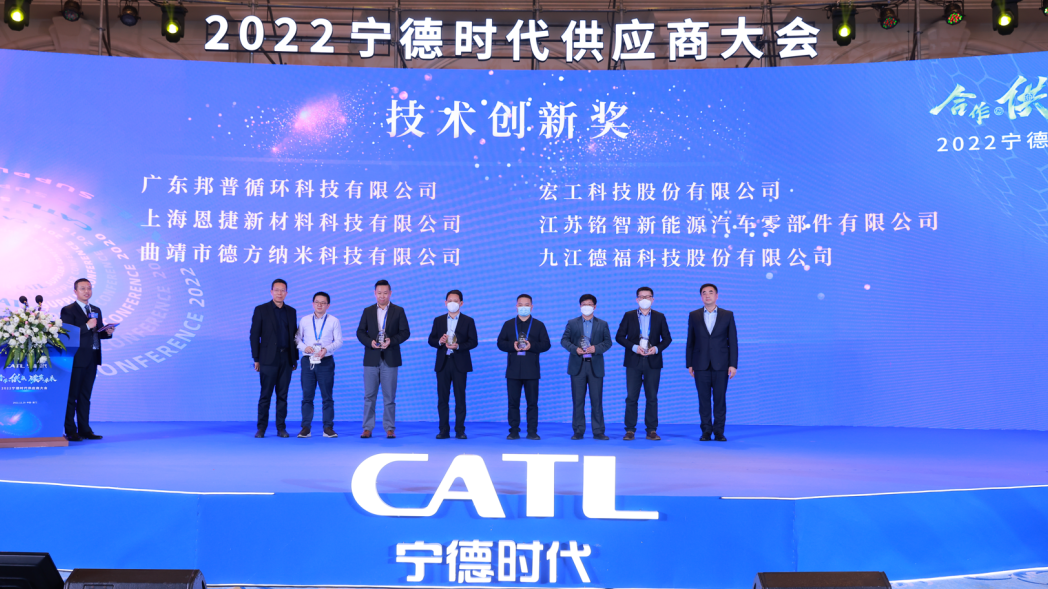 “合作供赢,,,,,,,,碳索未来”宁德时代2022年度供应商大会在福建厦门召开,,,,,,,,上海jdb电子网站获2022年度宁德时代供应商大会“手艺立异奖”。。。。 。。。。