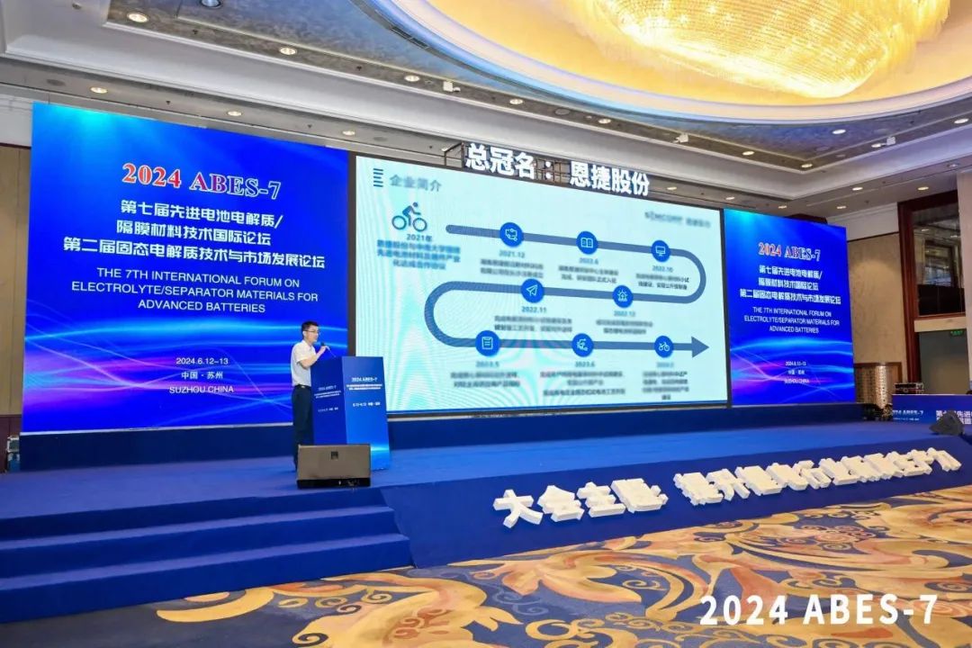 6月12-13日,,,,, ,由中国化学与物理电源行业协会等主理,,,,, ,jdb电子网站股份总冠名的“第七届先进电池电解质/隔膜质料手艺国际论坛暨第二届固态电解质手艺与市场生长论坛”(2024ABES-7)在苏州召开。。。。。。。jdb电子网站股份控股子公司湖南jdb电子网站、合资公司江苏三合的专家代表划分就固态半固态产品的结构及研发进度,,,,, ,向海内外著名科研院以是及企事业单位举行了精彩的分享。。。。。。。